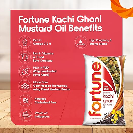 Fortune Kachi Ghani Mustard Oil is traditionally extracted from the first press of mustard seeds and comes with a high pungency level and strong aroma. This low-temperature cold-pressed process retains the mustard’s natural properties, vitamins and minerals, thereby adding a strong aroma and pungency – the perfect tadka to spice up your cooking!